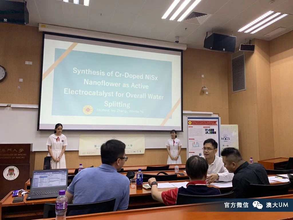 「我們的項目內容主要是研究如何優化催化劑,降低電解水產生氫氣的成本。一開始接觸這個項目的時候,都要查閱很多文獻,由於初次接觸,所以我們不太熟悉相關的學術用語,有賴澳大教授及博士生有系統地給予培訓,讓我們可以更快地了解該領域的知識。」葉穎超說:「在澳大的實驗室裡有比較高階的實驗儀器,他們亦會從旁指導操作和應用。」得益於澳大的資源及老師的指導,張菲菲和葉穎超在2019全澳青少年創新挑戰賽及2019年粵港澳青少年創新觀摩賽比賽獲得一等獎,並在中學階段以共同作者的身份發表了一篇SSCI 論文。